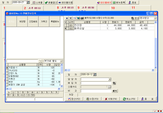 ÇØÇǸô ¿Ü½Ä °ü¸® ÇÁ·Î±×·¥¿¡¼ °¢°¢ÀÇ Å×À̺íÀ» ¼±ÅÃÇÒ ¶§ º¸¿©Áö´Â Å×À̺íÀÇ »ó¼¼ ȸé